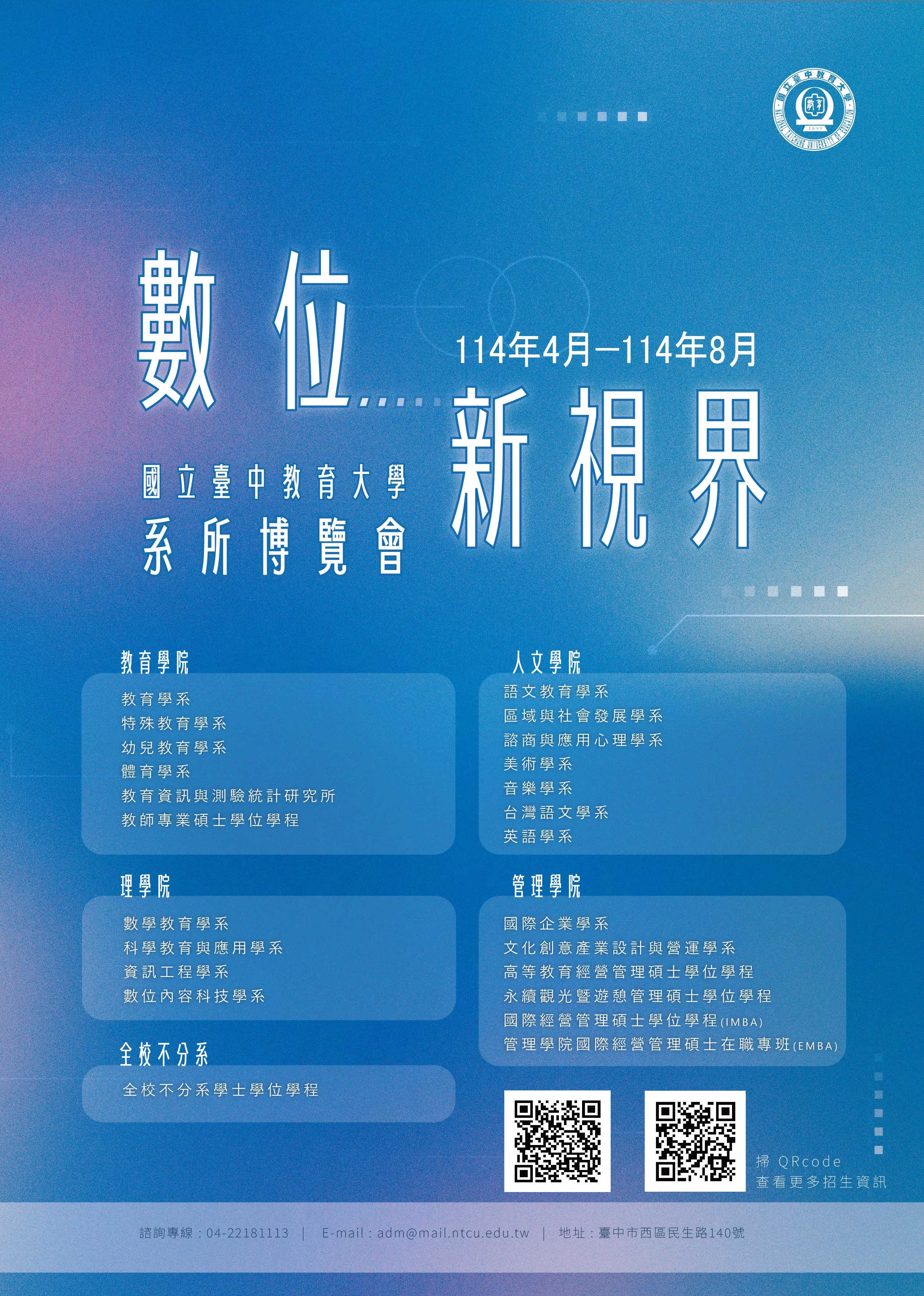 二、數位博覽會-「數位新視界-國立臺中教育大學線上系所博覽會」